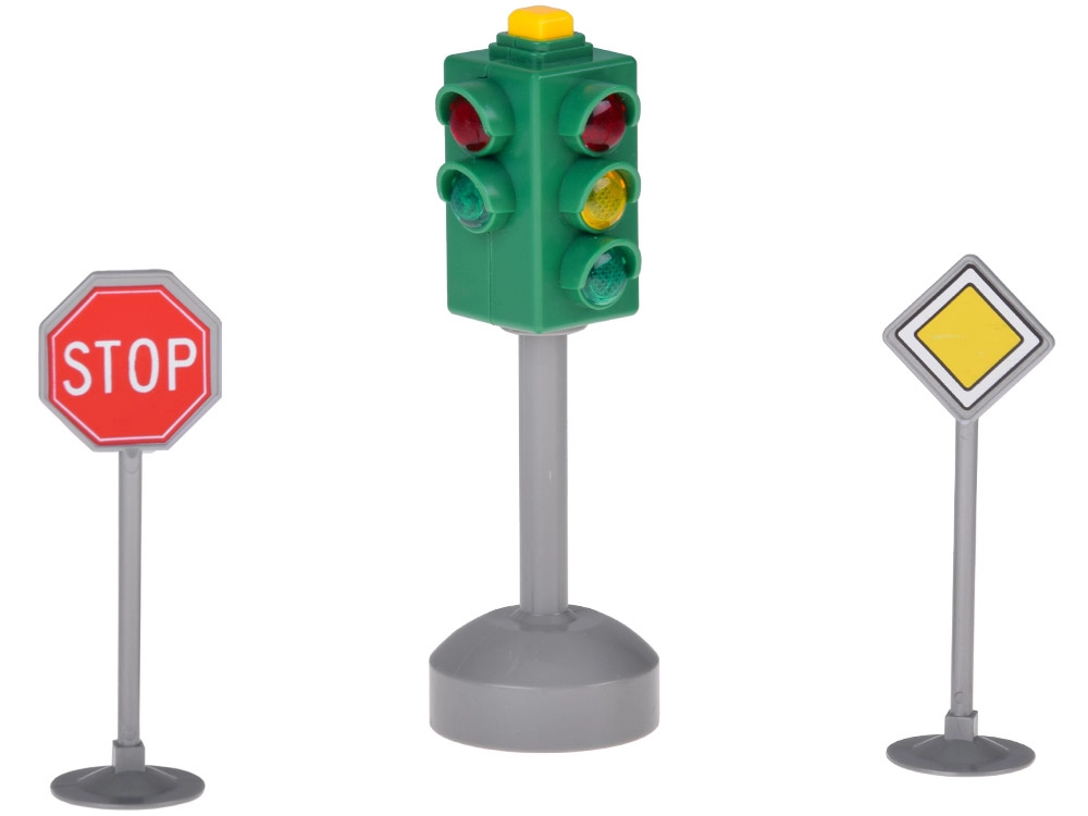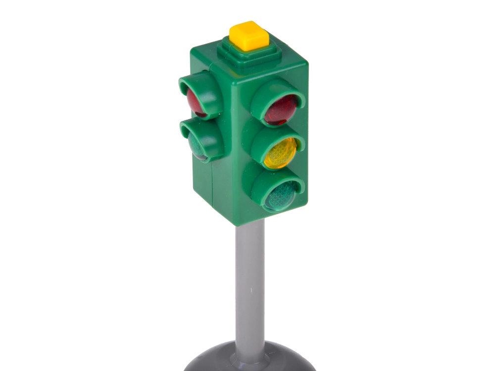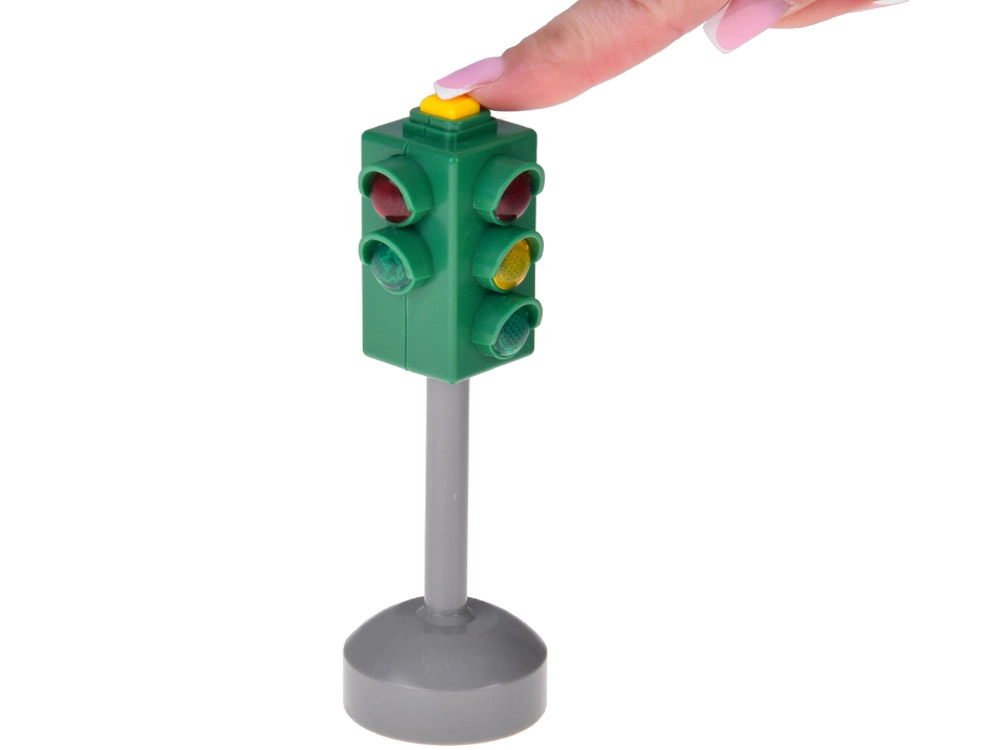 Deze realistische verkeerslichtset brengt orde en plezier in het kinderspel. Het verkeerslicht heeft rood, geel en groen licht en bijbehorende geluidseffecten, zodat kinderen begrijpen wanneer je moet stoppen, wachten en rijden. In de verpakking zitten ook 2 verkeersborden – STOP en Voorrang verlenen, die speelscenario’s verrijken en veilige gewoonten ondersteunen.