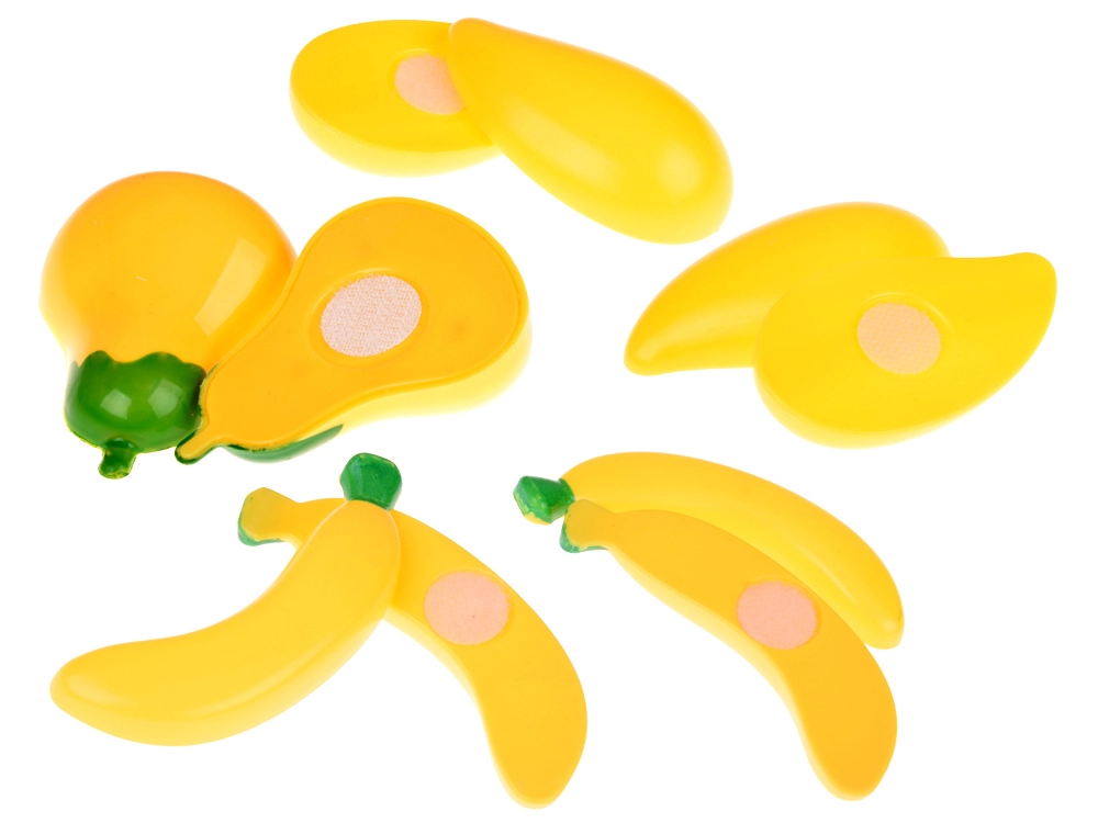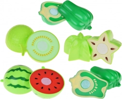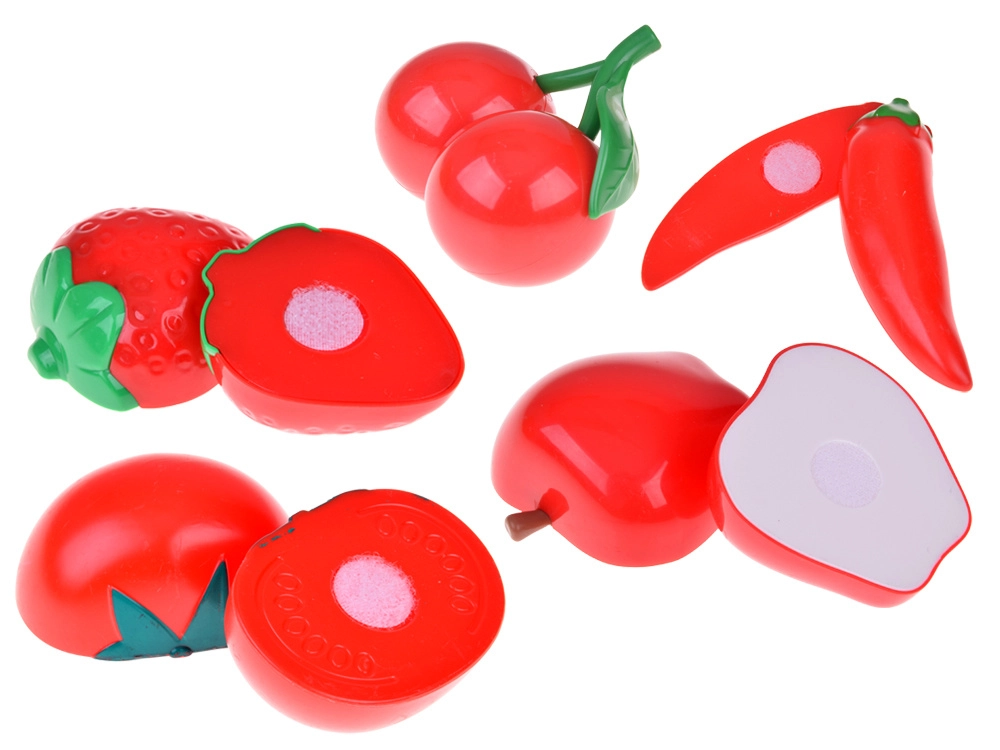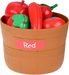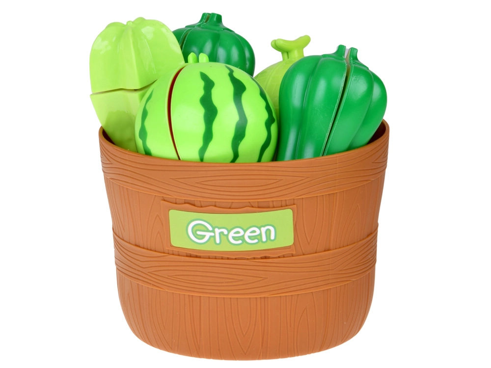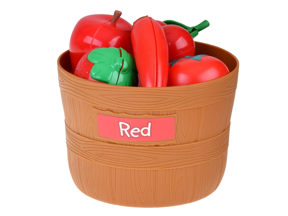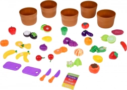 De set bevat duurzame mandjes met gekleurde labels, twee snijplanken en twee veilige messen om de juiste greep en oog-handcoördinatie te oefenen. Het spel ontwikkelt fijne motoriek, logisch denken, woordenschat en creativiteit.