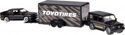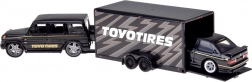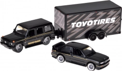De MERCEDES heeft een afneembare trekhaak en de aanhanger is los te koppelen zonder te schroeven. Zo geniet je van realistische scenario’s van laden tot transport. De set is ideaal als cadeau of als blikvanger in de vitrinekast – een combinatie van klassiek en motorsport in het praktische 1:64-formaat.