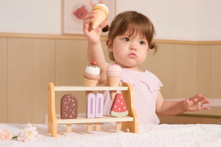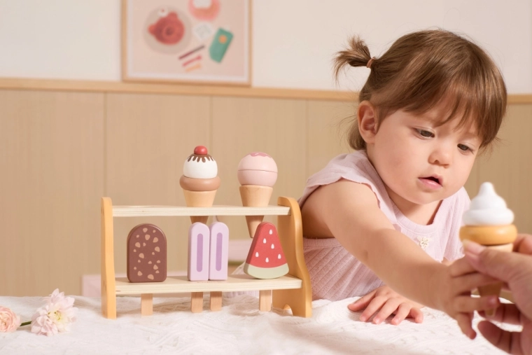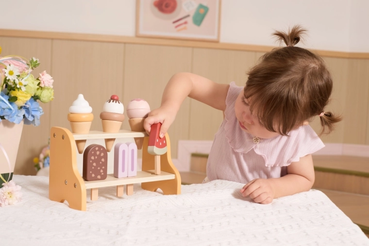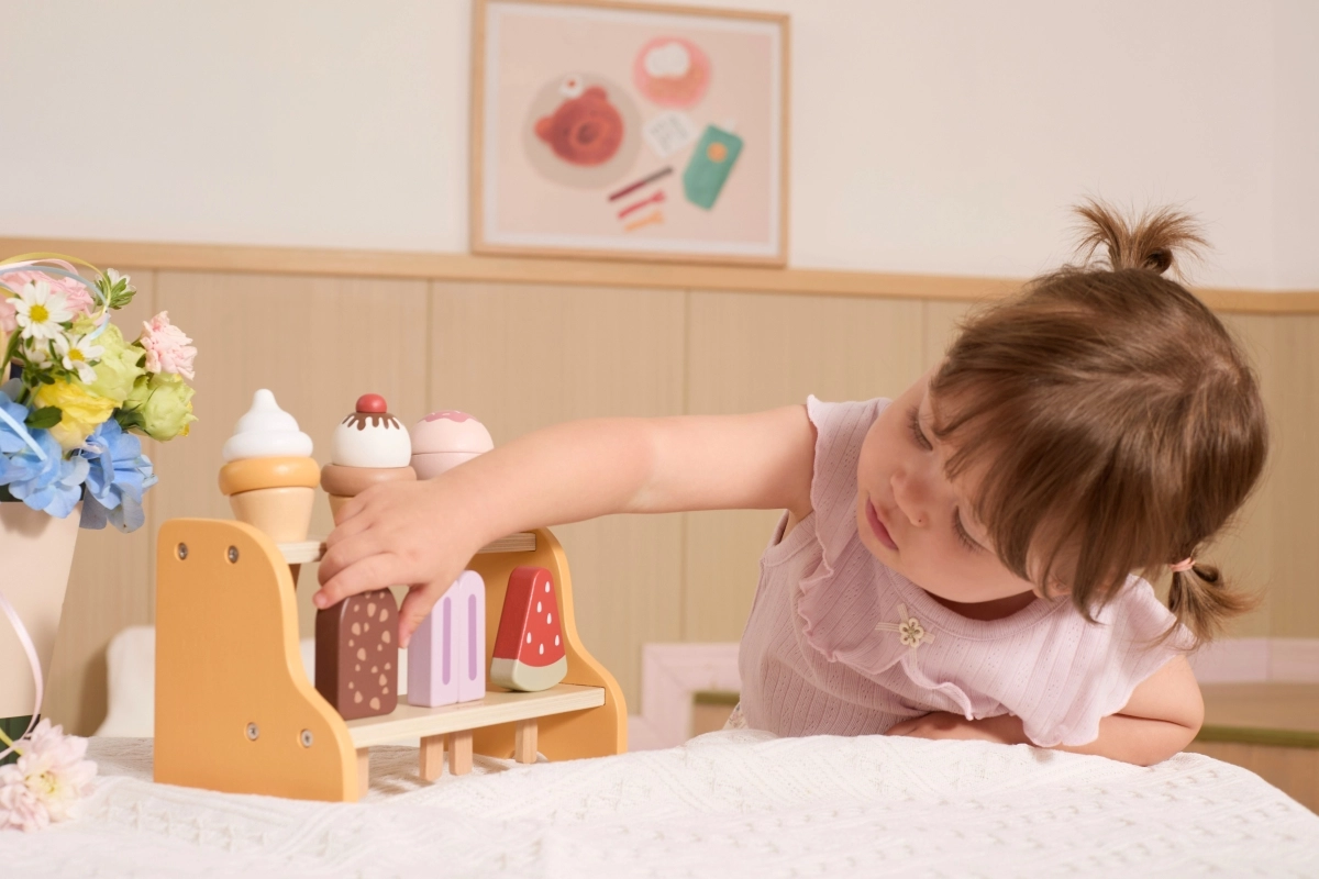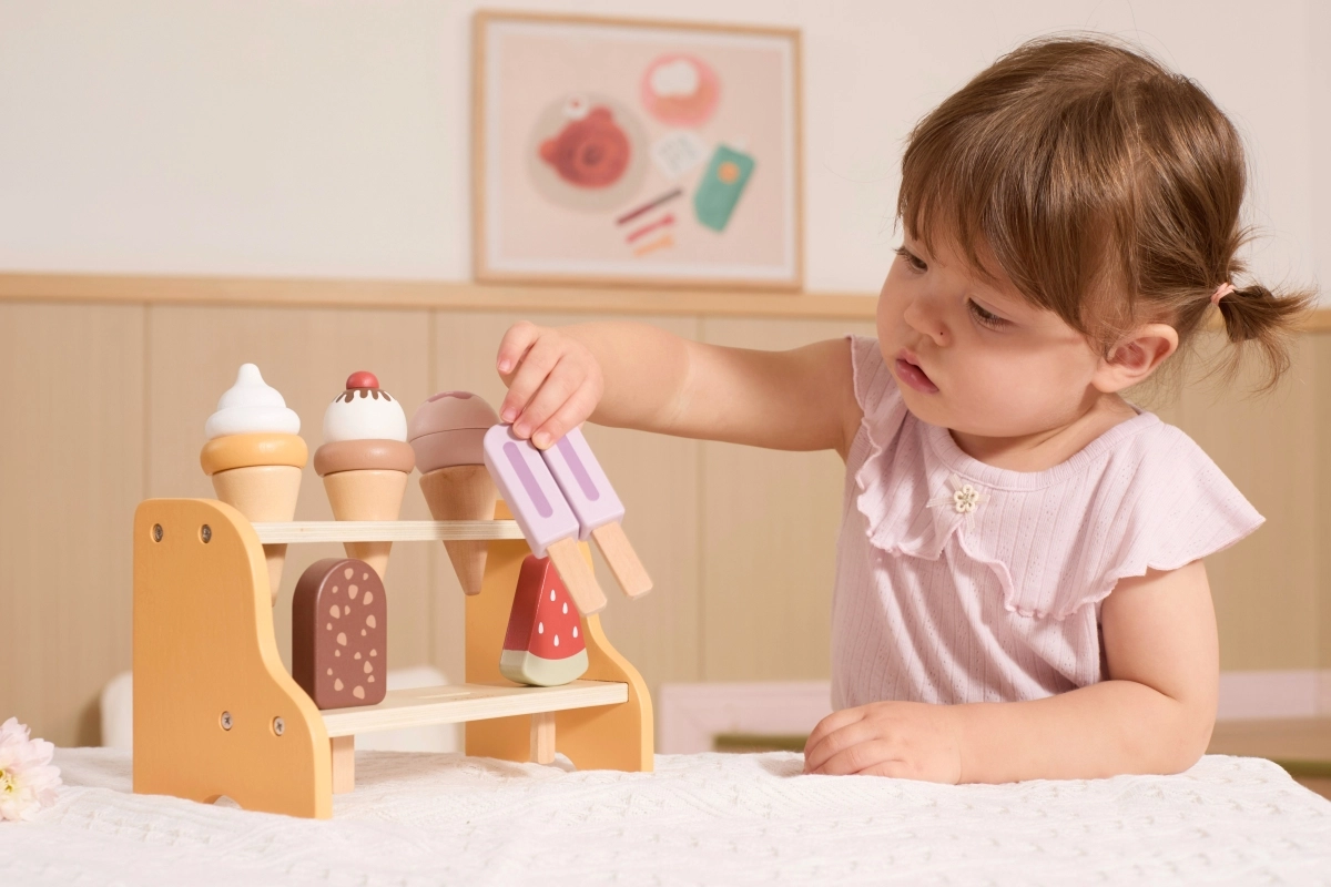 IJssalon spelen ontwikkelt fijne motoriek, hand-oogcoördinatie en sociale vaardigheden tijdens het samen verkopen en kopen. Dankzij de uitneembare delen oefenen kinderen grip, sorteren en orde, terwijl realistische vormen en kleuren de verbeeldingskracht en creativiteit prikkelen.