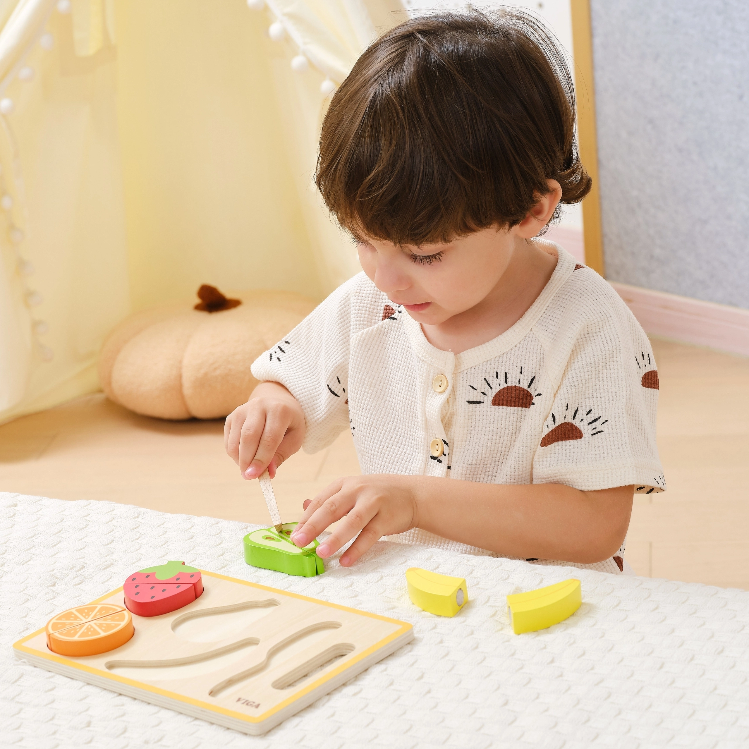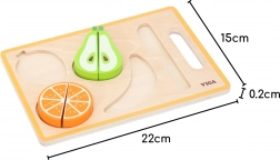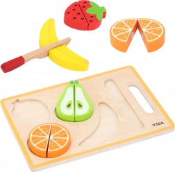 De VIGA houten snijfruitset is een geweldige aanvulling op een kinderkeukentje. Kleurrijke, robuuste fruitstukken blijven door klittenband bij elkaar, wat tijdens het snijden prettige weerstand en een realistisch gevoel geeft. Kinderen kunnen zo veilig kookvaardigheden oefenen en ondertussen vaardigheid en verbeelding ontwikkelen.