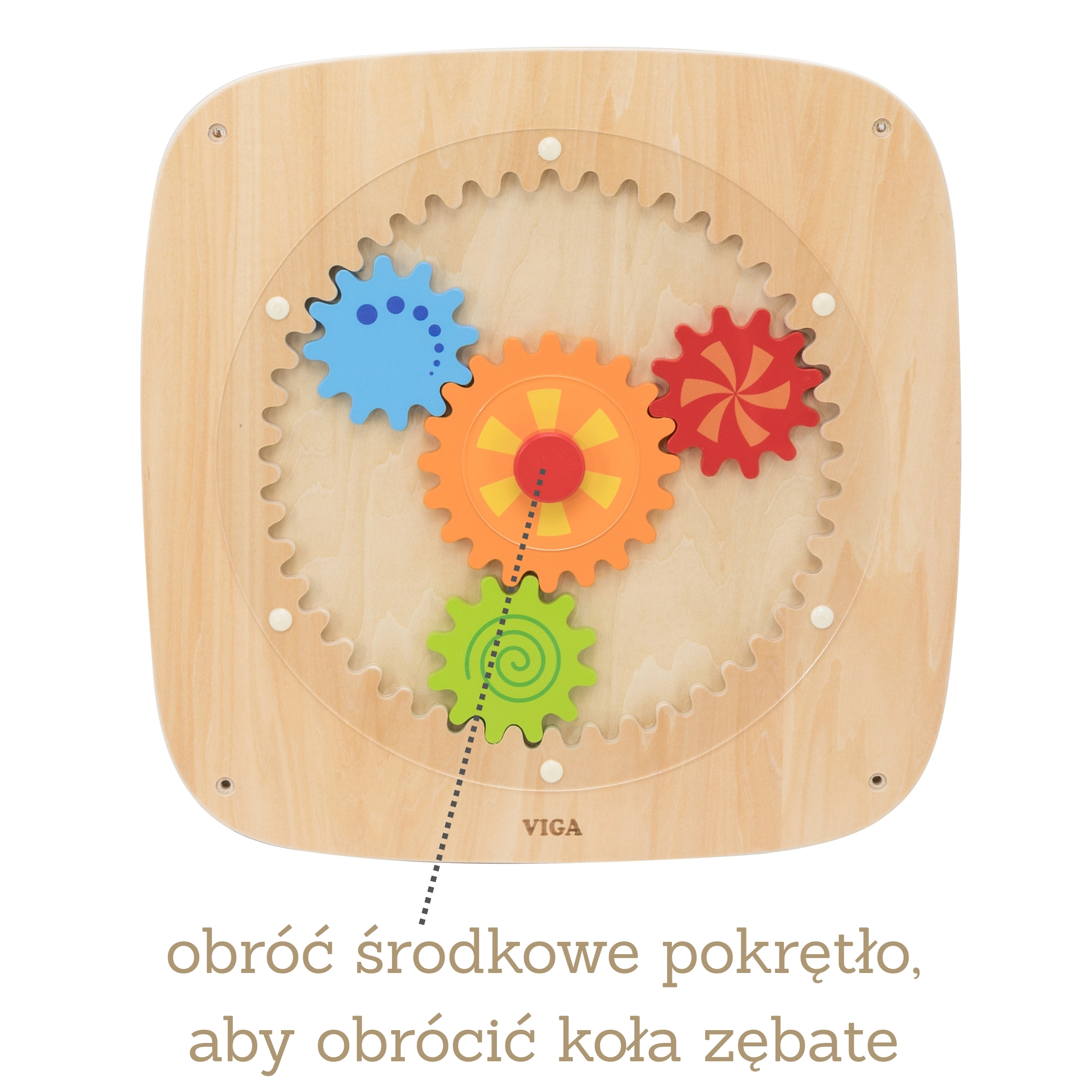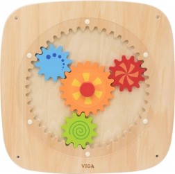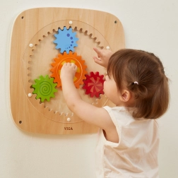 Dit houten wandbord met kleurrijke tandwielen is ontworpen om kinderen plezier in ontdekken te geven. Door aan het centrale wiel te draaien, komen alle tandwielen tegelijk in beweging, waardoor kinderen op een natuurlijke manier het principe van kracht, beweging en oorzakelijke verbanden begrijpen. De verschillende kleuren en patronen op de wielen zorgen tijdens het draaien voor aantrekkelijke visuele effecten.