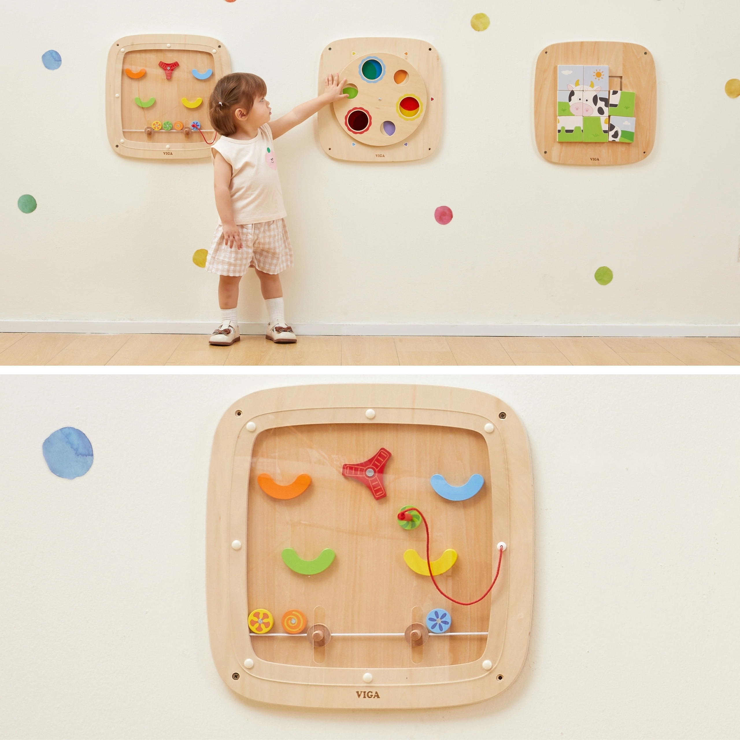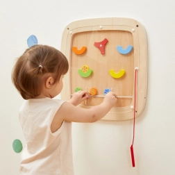 Deze houten wandplaat is ideaal voor kinderkamers, speelruimtes en kinderdagverblijven – wandmontage bespaart ruimte en zorgt voor veilig, stabiel spel. Met de magnetische pen sturen kinderen de bewegingsrichting van de knikkers, overwinnen ze obstakels en mikken ze op zones met punten, waardoor ze op een natuurlijke manier geduld, concentratie en coördinatie versterken.