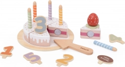 De set is gemaakt van kwaliteitshout met een glad oppervlak en veilige verven. Pasteltinten nodigen uit tot spel, terwijl cijfers en kaarsjes op een natuurlijke manier tellen, oog-handcoördinatie en fijne motoriek ontwikkelen. Geweldig als aanvulling op een kinderkeuken en voor een “kinder” verjaardagsfeestje.