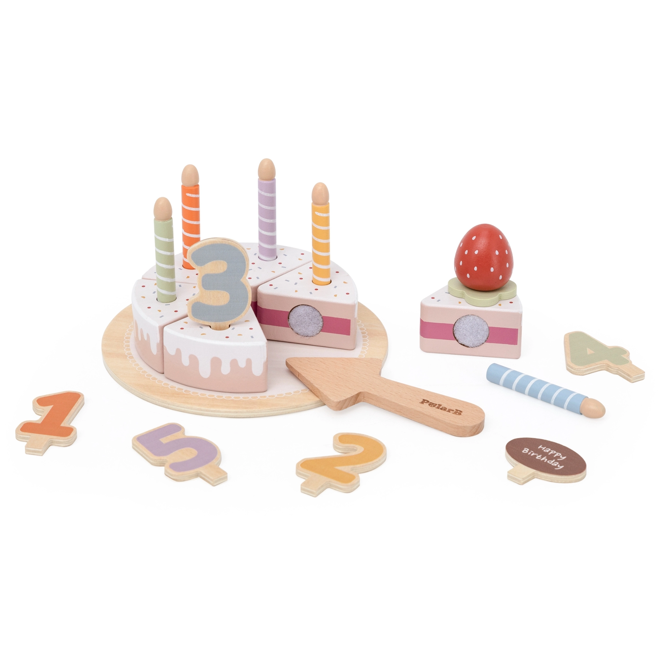 - Speelwaarden: ontwikkeling van fantasie en sociaal spel, oefenen van tellen en sorteren, training van de fijne motoriek bij het plaatsen van kaarsjes en het snijden.