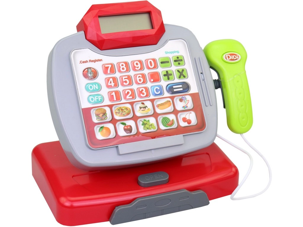 Deze realistische kinder-kassa is een geweldige aanvulling voor rollenspellen als winkelieren. Dankzij de licht- en geluidseffecten en de werkende scanner stimuleert het de kinderlijke fantasie nog meer. De geïntegreerde digitale rekenmachine maakt optellen en overzicht over aankopen eenvoudig.