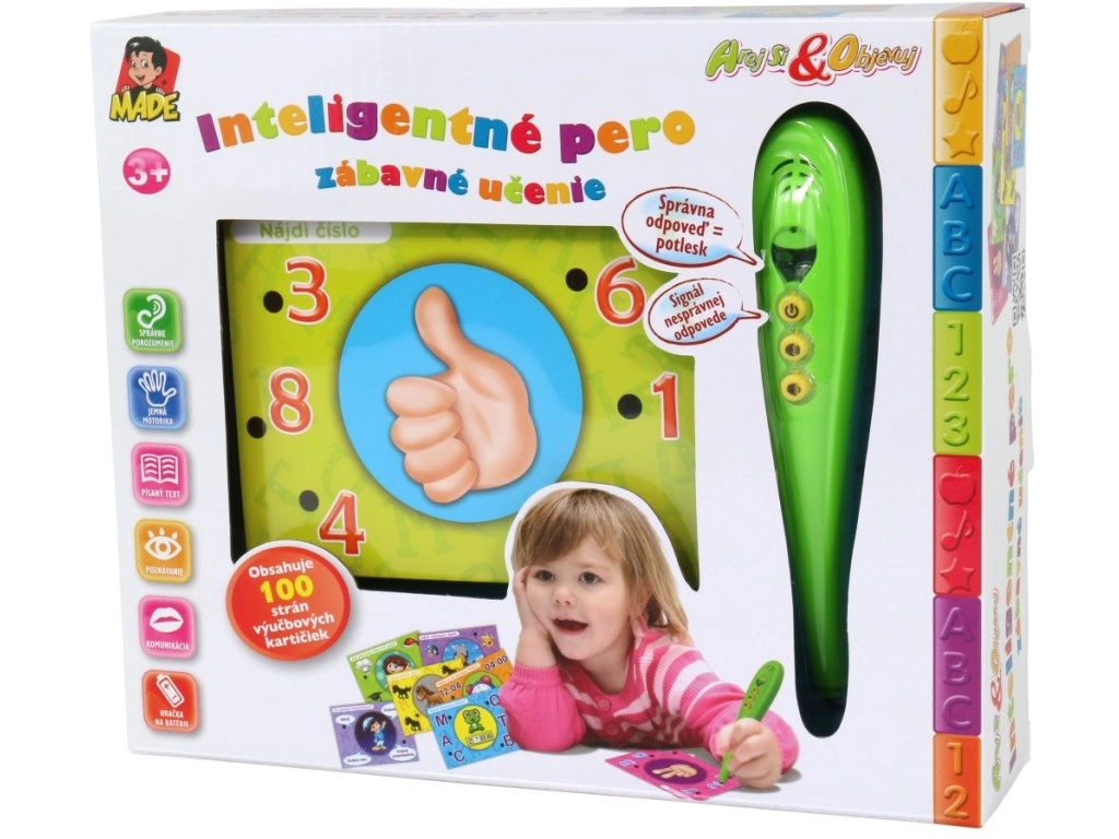 De slimme pen met kaarten is een ideale hulp voor speels leren. Kinderen trainen logisch denken, opmerkzaamheid en kennis, en de directe lichtfeedback motiveert hen om verder te ontdekken. Dankzij de Slowaakse vragen en antwoorden is de set ook geschikt om begrip van een vreemde taal bij Nederlandse kinderen te stimuleren.