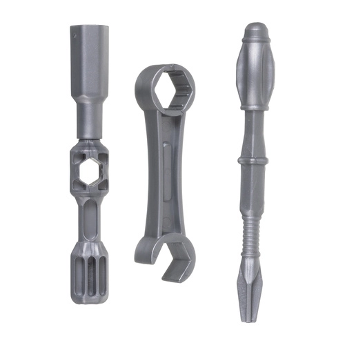 Inclusief veilige kunststoftools – schroevendraaier, sleutels en opzetstukken. Ideaal om greep, coördinatie en zelfstandigheid te trainen tijdens montage en demontage.
