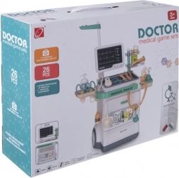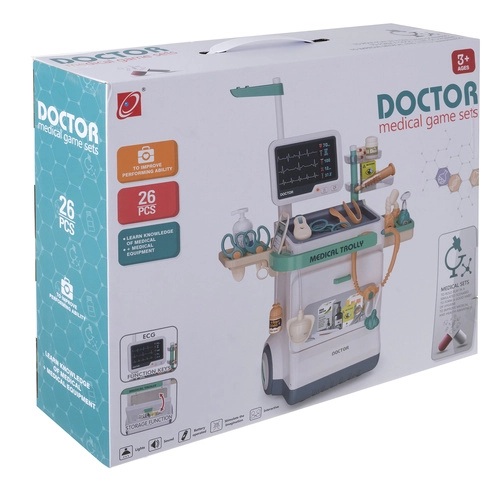 In de set vind je 26 onderdelen, waaronder een stethoscoop, thermometer met instelbare temperatuur, spuit, scalpel, pincet, schaar, neurologisch hamertje, spiegeltje en andere accessoires. Praktische vakken en deurtjes zorgen voor georganiseerde opslag van alle instrumenten, zodat alles altijd binnen handbereik is. Duurzame, veilige materialen zijn geschikt voor kinderen vanaf 3 jaar.