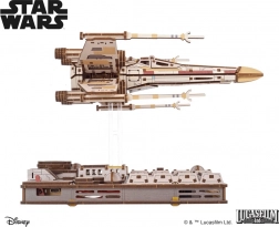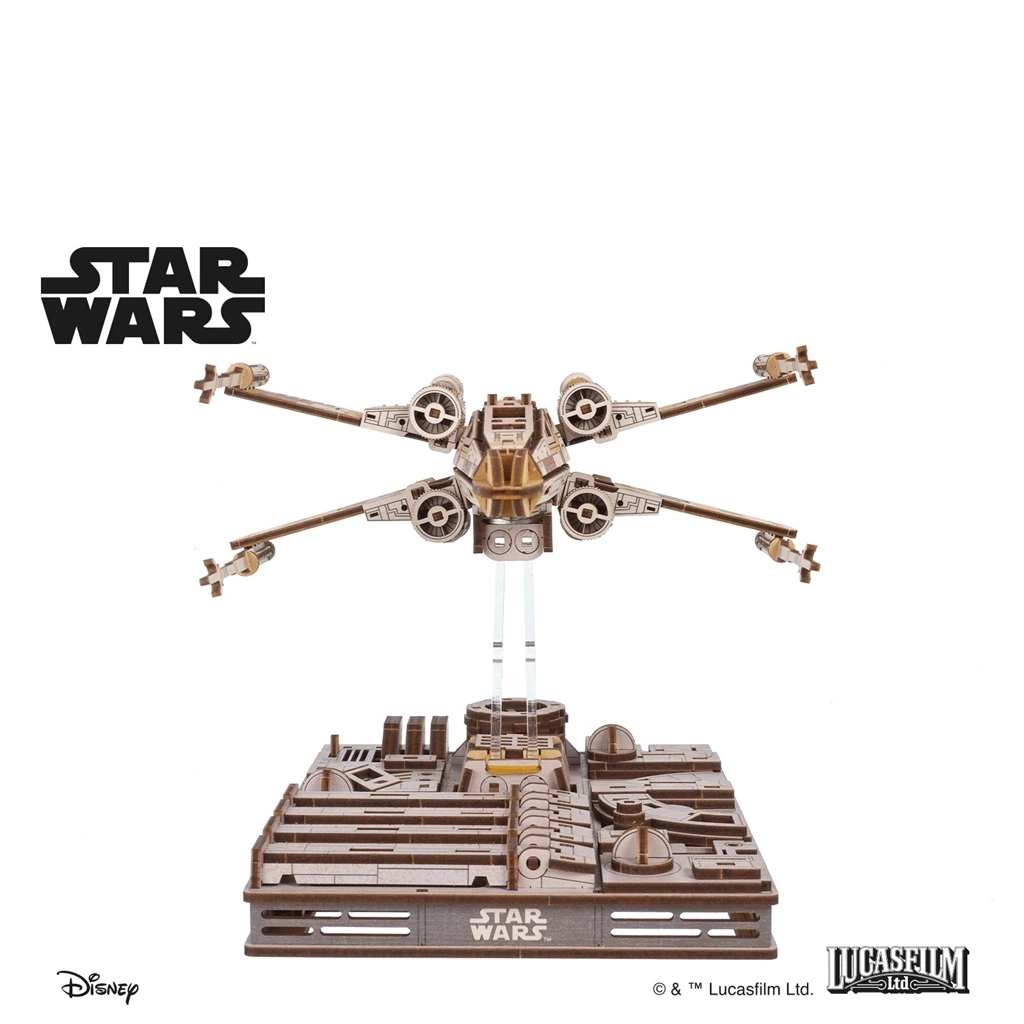 Bouw de iconische jager STAR WARS X-Wing Luke Skywalker als een houten 3D-model met een mechanische voet die vluchtmanoeuvres simuleert. Het model biedt een openende cockpit, S-foil vleugels in aanvalsstand, magnetische bevestiging en compatibiliteit met de TIE-jager om een epische Death Star-scène te creëren.