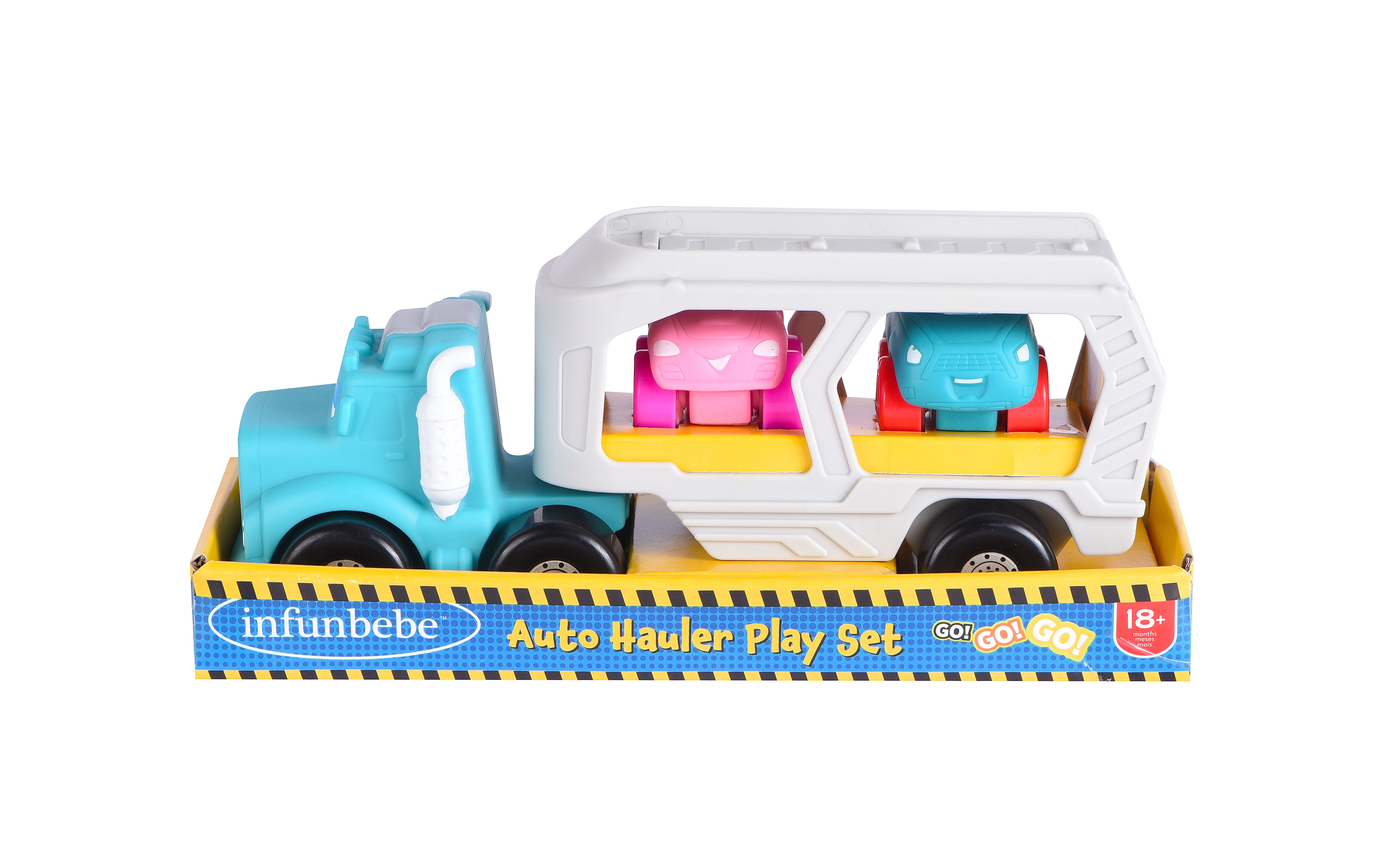 De verpakking bevat een trekker en twee personenauto’s, die eenvoudig kunnen worden geladen en gelost. De lichte en duurzame constructie is geschikt voor dagelijks gebruik en gemakkelijk mee te nemen.