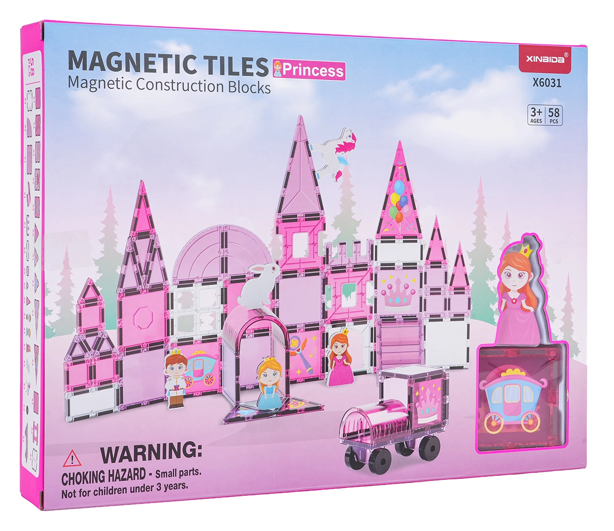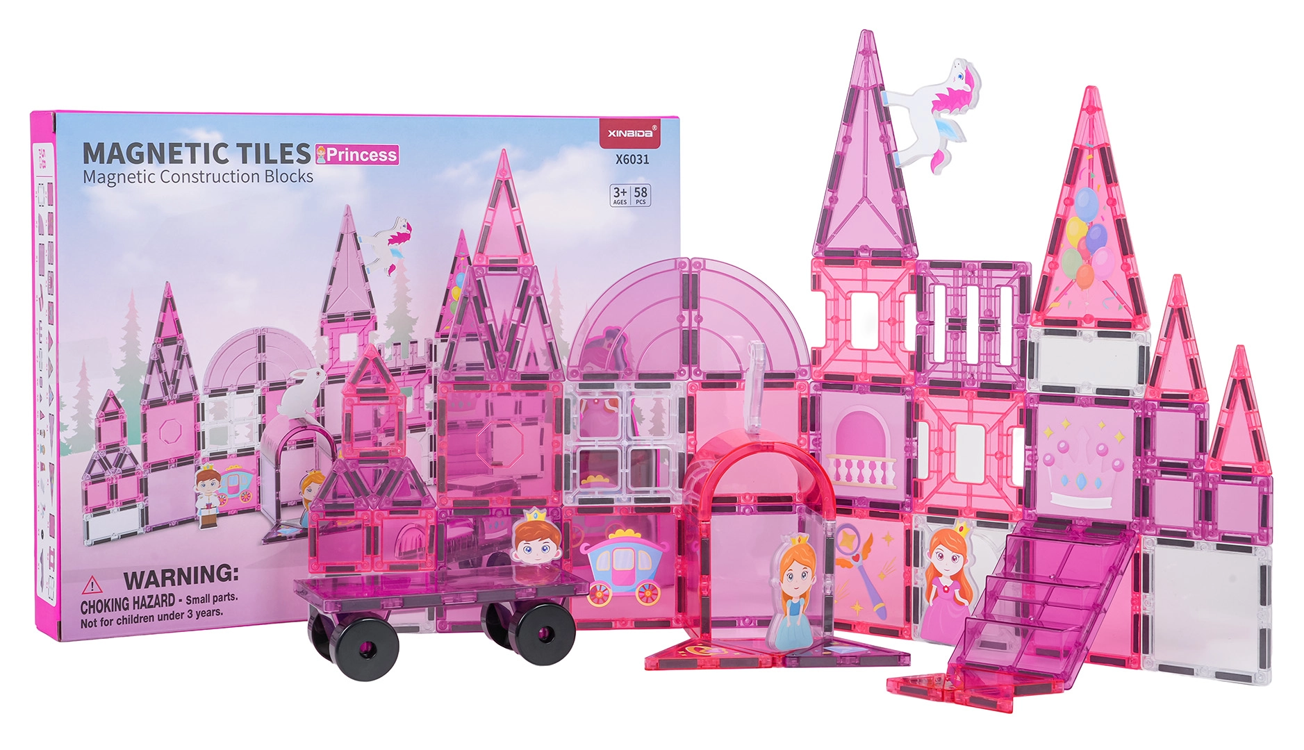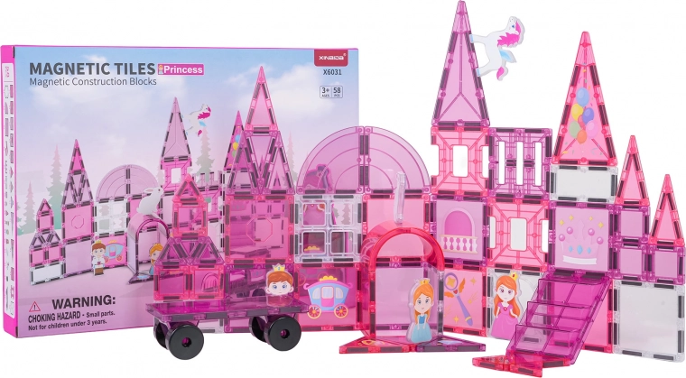 Ontdek de betoverende magnetische bouwset voor kinderen vanaf 3 jaar – een set met 58 onderdelen om een roze prinsessenkasteel te bouwen. De onderdelen van duurzaam plastic klikken aan elkaar met behulp van sterke neodymiummagneten, zodat er stabiele 3D-constructies ontstaan. Inclusief figuurtjes van een prins, prinsessen, een eenhoorn en een konijntje en een onderstel met wieltjes voor voertuigen. Een geweldige speelgoedset die creativiteit, geduld en concentratie stimuleert.