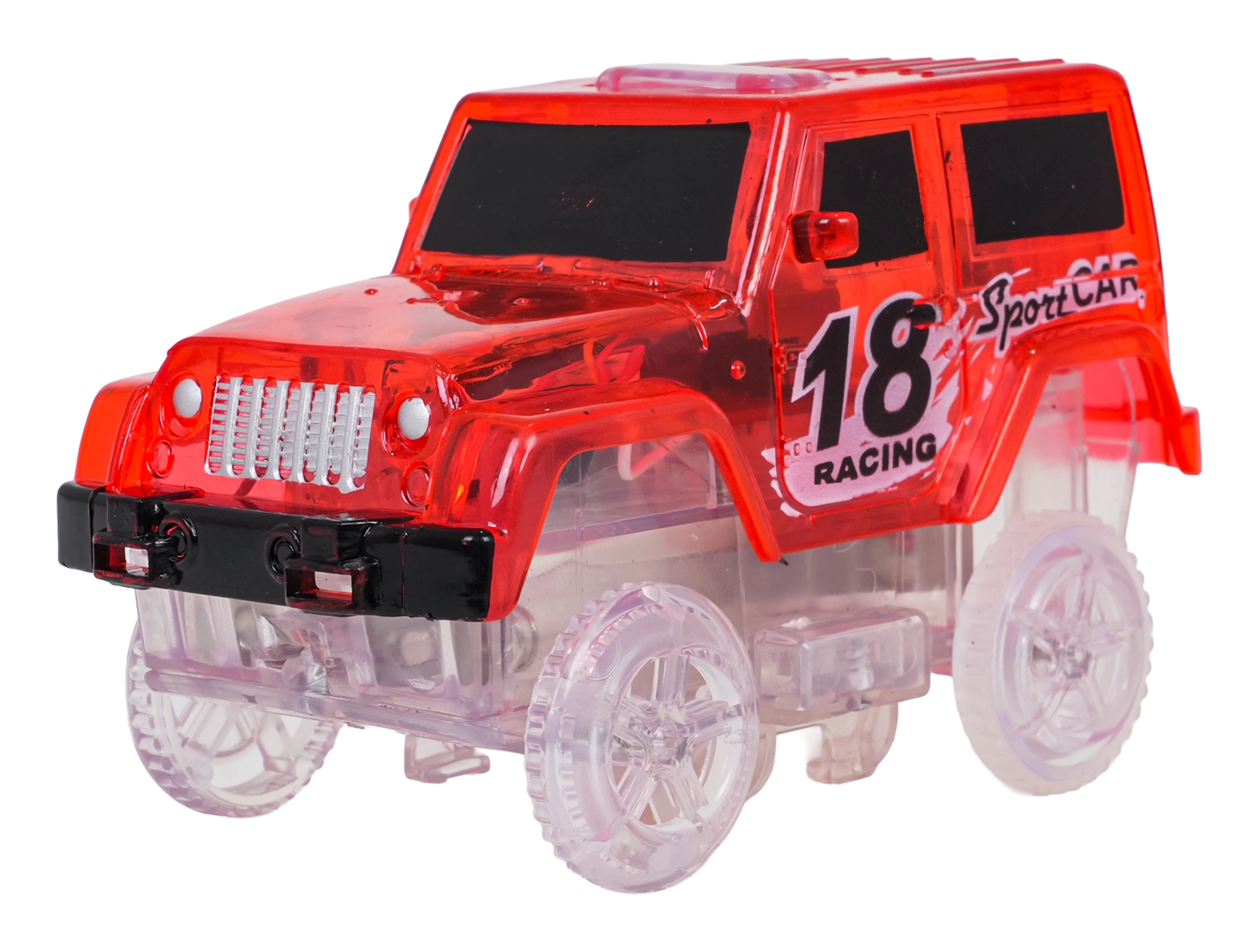 De transparante behuizing en lichteffecten veranderen de nachtelijke rit in een show. Druk op de knop op het dak en rijden maar.