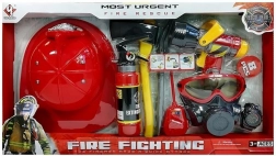 In de verpakking vind je een helm, masker, slangmondstuk, handbijl, breekijzer, handbrandblusser, portofoon en horloge. De set wordt geleverd in een cadeauverpakking met venster, waardoor het een geweldig cadeau-idee is voor kleine brandweerliefhebbers.