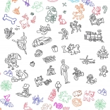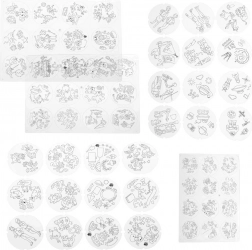 In de set vind je 6 vellen met elk 12 afbeeldingen – dieren, objecten en seizoensmotieven om over te trekken, in te kleuren en vormen te leren.
