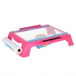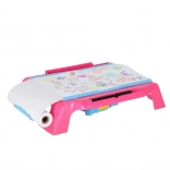 De set bevat 6 motievenvellen (in totaal 72 afbeeldingen), een set met 12 kleurpotloden en 12 stiften. De tafel heeft geïntegreerde opbergvakken en een transparant veiligheidsafdekplaatje. Ideaal voor kinderen vanaf 3 jaar, stimuleert fijne motoriek, concentratie en fantasie.