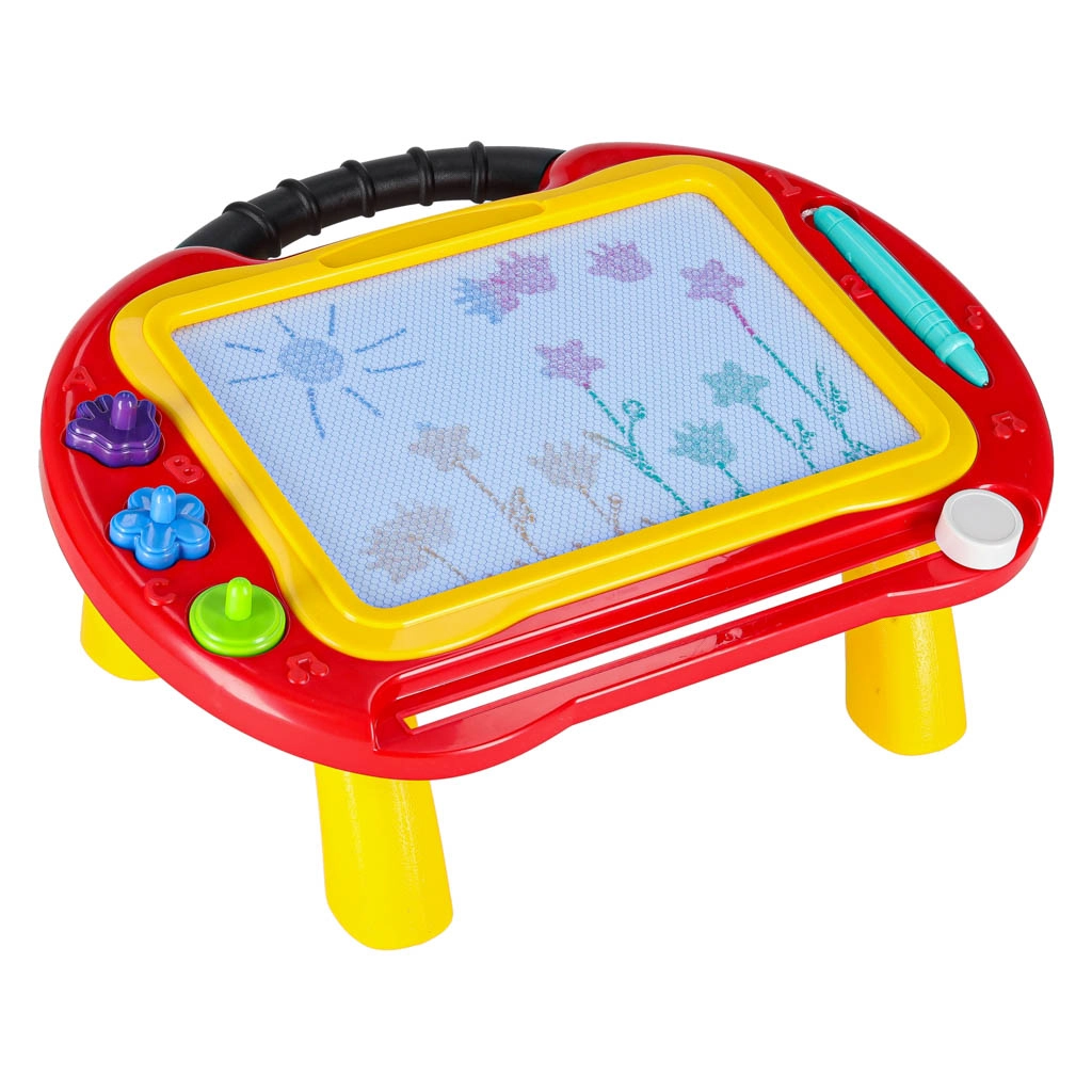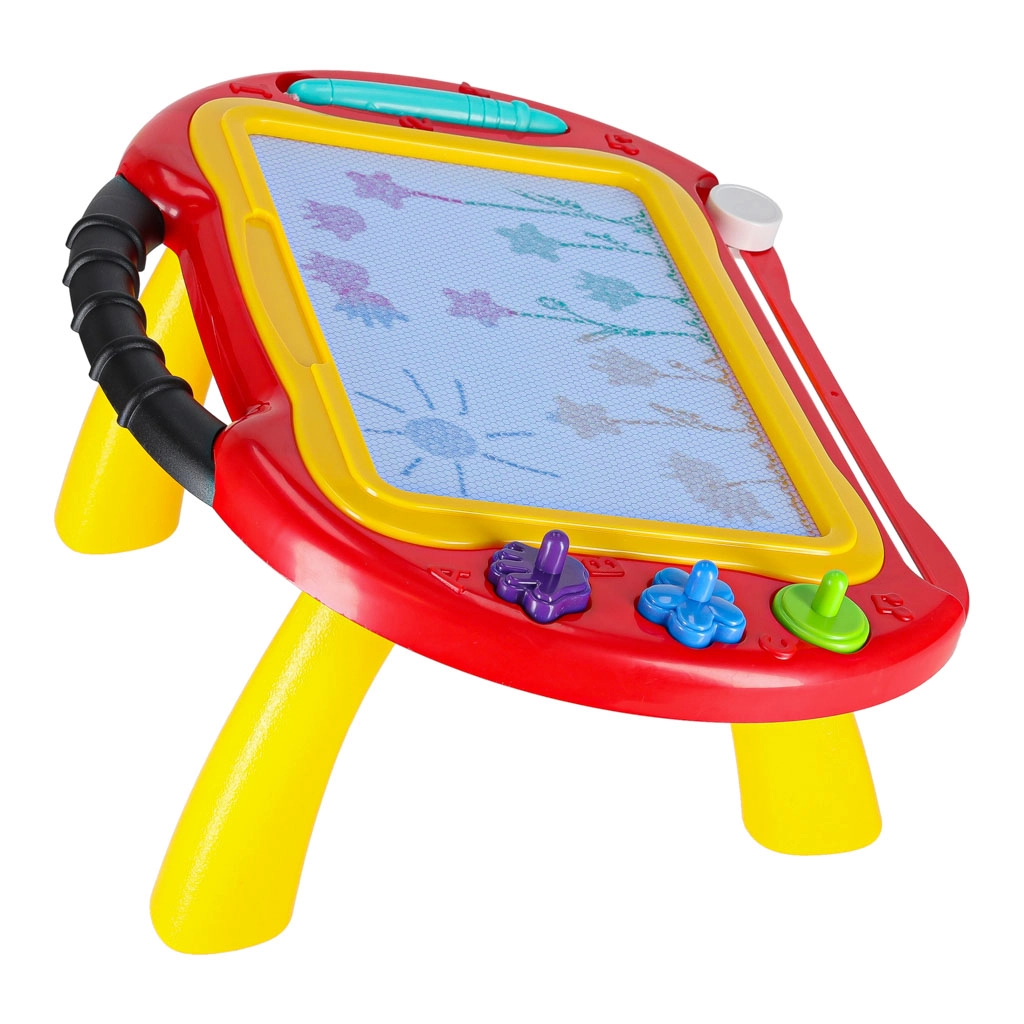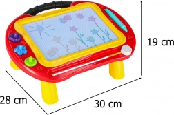 Het kleurrijke magnetische 2-in-1 bord combineert een tekentafeltje en een draagbaar znikopis-bord. Dankzij de magnetische stylus, 3 stempels en een multicolor scherm (4 kleuren) creëren kinderen zonder rommel en wissen ze alles snel met de schuifwisser. Afneembare poten en een praktisch handvat zorgen voor eenvoudig meenemen, thuis en onderweg.