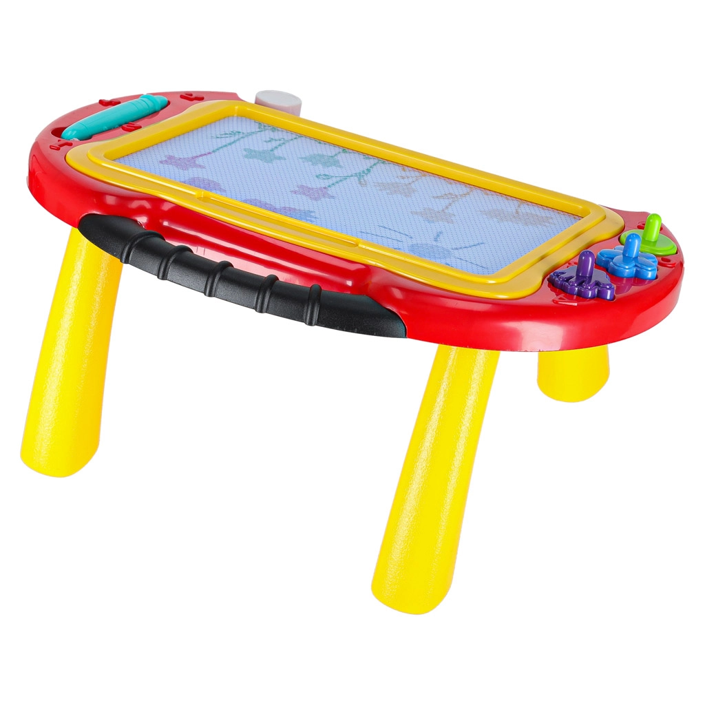 Het scherm toont 4 kleuren voor levendige tekeningen, die met één beweging van de schuifwisser worden gewist. De stylus aan een koordje raak je niet kwijt en de afneembare poten maken spelen overal mogelijk – in de kinderkamer, woonkamer en onderweg.