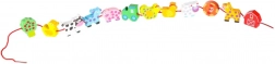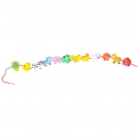 Het rijgen van houten onderdelen aan het koord ontwikkelt vingernauwkeurigheid, geduld en concentratie. Ideale voorbereiding op schrijven en tekenen op een speelse manier.