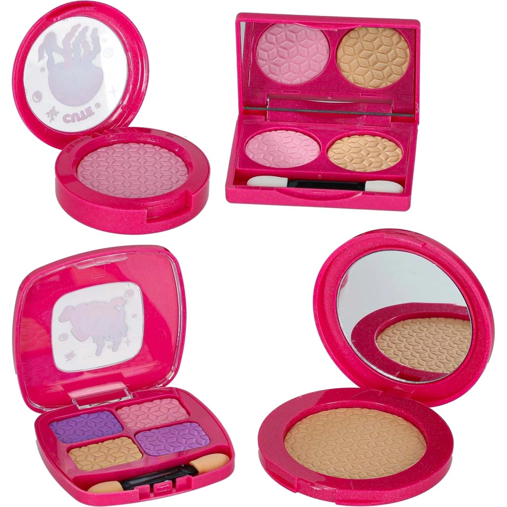 Oogschaduw en poeders zijn van gekleurd foam en de mascara is leeg – realistisch spelen zonder kans op vlekken.