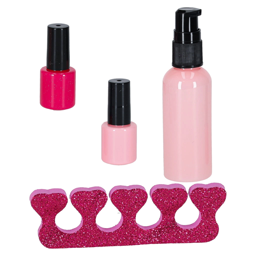 - Rijke uitrusting: kwastjes, applicators, “nagellak”, glitters, lipgloss, teenenspreider en meer.