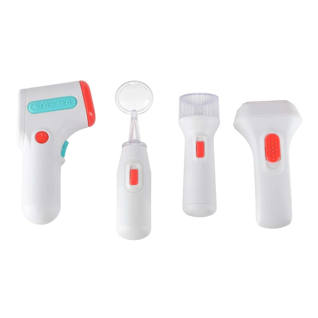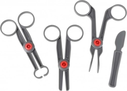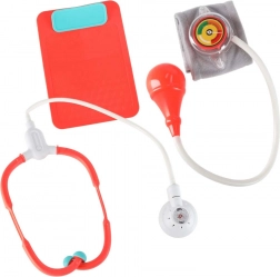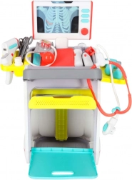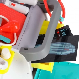 In de set vind je alles voor kleine dokters: een stethoscoop (licht en geluid), bloeddrukmeter, echo (licht), zaklamp (licht), elektronische thermometer (licht en geluid), tandendoscoop (licht), pulsoximeter, neurologisch hamertje, schaar, tang en pincet, scalpel, spuit, medicijnendoos, schrijfplaat met clip en 6 röntgen- en ECG-opnames.
