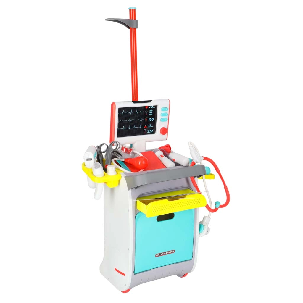 Het hoofdpaneel speelt melodieën af, de instrumenten lichten op en maken geluid. Kinderen oefenen échte medische handelingen in een veilige speelse vorm.