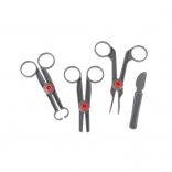 Van stethoscoop en bloeddrukmeter tot echo, thermometer en spuit. Inclusief röntgen-/ECG-opnames, schaar, tang, pincet, scalpel en meer.
