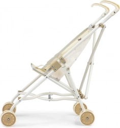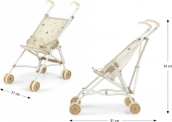 Lichte en compacte poppenwagen Milly Mally Julia Nature maakt elke kleine verzorger blij. Heeft een metalen frame, veiligheidsriemen, dubbele plastic wieltjes en een vergrendeling tegen onbedoeld inklappen. Klapt eenvoudig op als een parapluwagen, de bekleding van afwasbaar polyester is wasbaar.