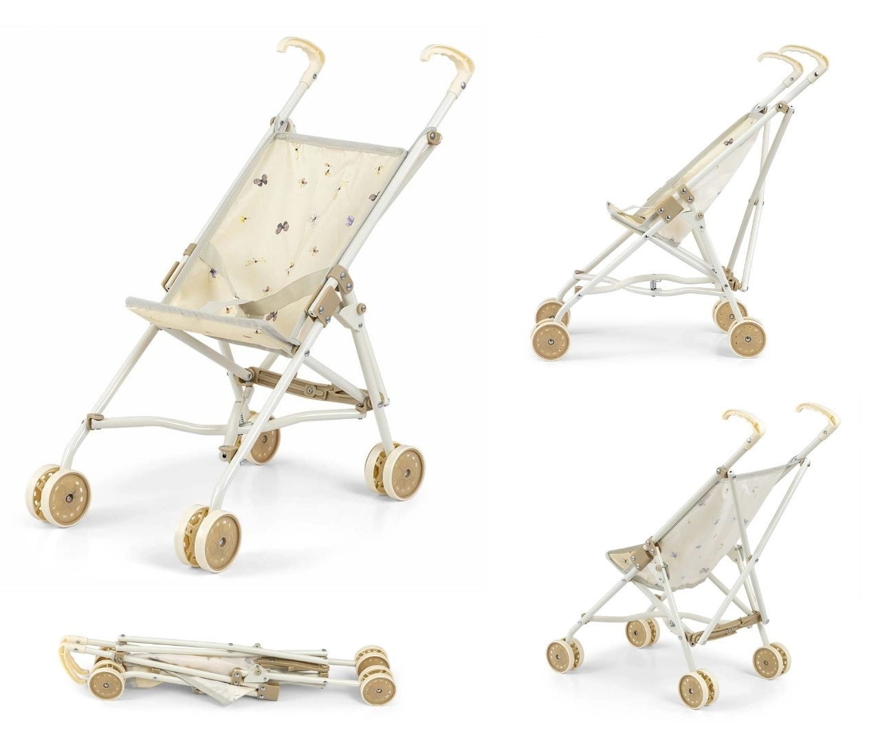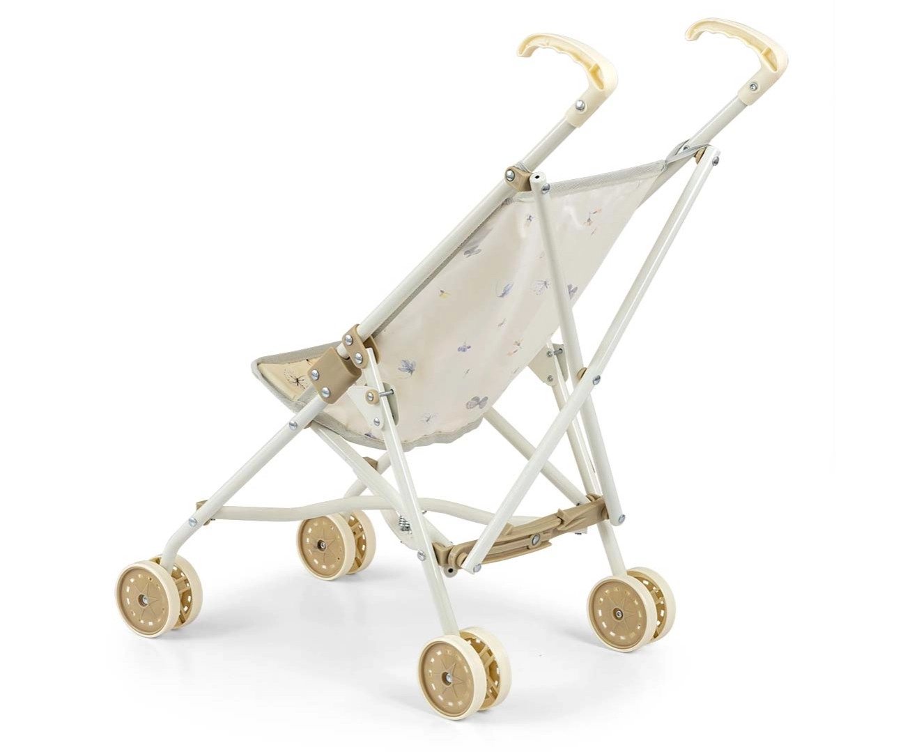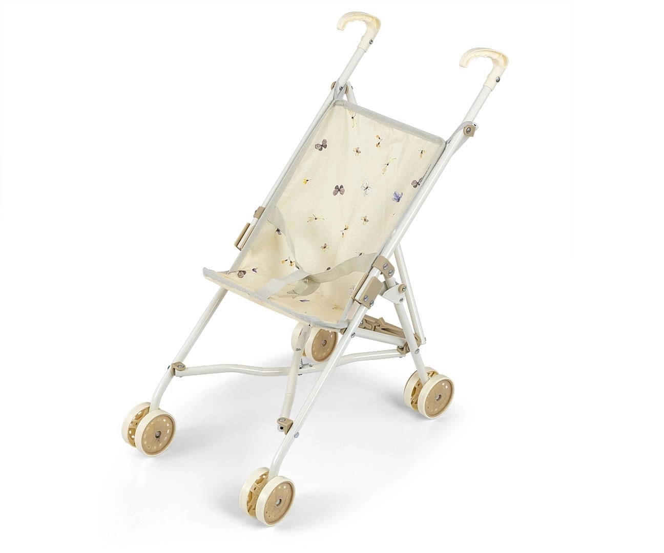Dankzij het snelle paraplu-opvouwen kan de wagen plat worden opgeborgen, zodat hij thuis en onderweg weinig ruimte inneemt. Het metalen frame biedt stevigheid, de dubbele wieltjes zorgen voor soepel rijden en de veiligheidsriem houdt de pop veilig op zijn plaats.