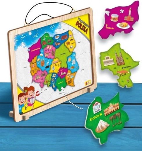 De magnetische kaart van Polen I'M A GENIUS is een geweldige educatieve tool die spel en leren combineert. Bij het leggen van de kaart oefenen kinderen hun fijne motoriek, kaartoriëntatie en kennis van de regio’s en hun culturele hoogtepunten.