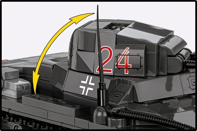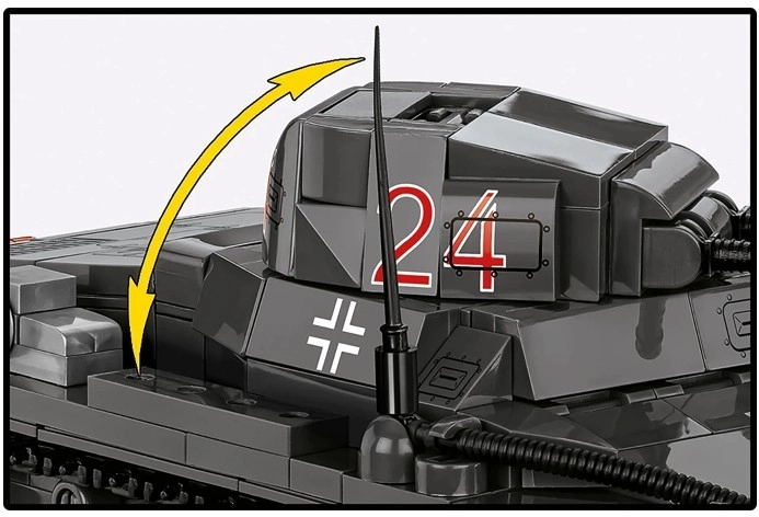 Een 360° draaibare koepel, verstelbare bewapening en realistische rupsbanden met wielen maken dynamische scènes, vloeiende bewegingen en een aantrekkelijke presentatie mogelijk.