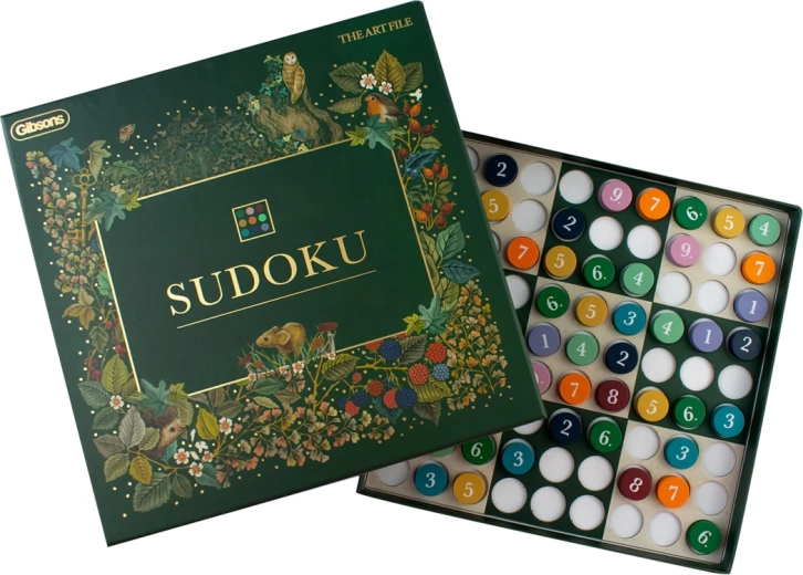Geniet van de tijdloze charme van sudoku in een prachtige, kleurrijke uitvoering. Deze versie van GIBSONS is ontstaan in samenwerking met The Art File en vervangt cijfers door gekleurde stenen, die elk speelmoment tot leven brengen. Het spel is perfect voor het trainen van logica, concentratie en visueel geheugen – en oogt bovendien elegant dankzij de hoogwaardige afwerking.