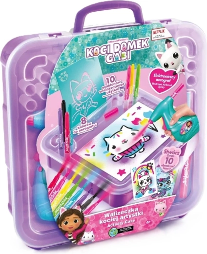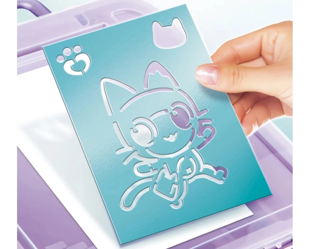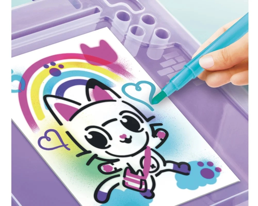 Deze draagbare creatieve set is een geweldig cadeau voor kleine kunstenaars die van kleuren en fantasie houden. Plaats eenvoudig een stift in het apparaat, druk op de knop en begin te spuiten – de eenvoudige bediening is ook geschikt voor jongere kinderen. Het ontwerp geïnspireerd op Gabby's Poppenhuis zal alle fans van schattige kattige personages blij maken.