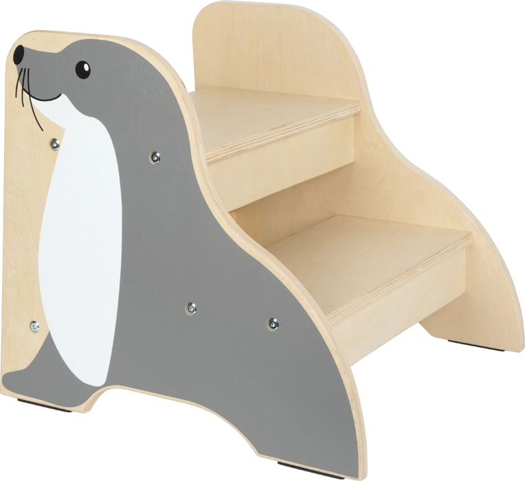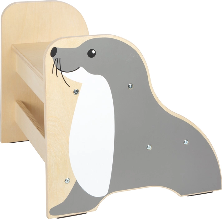 Stabiel kindertrapje met een schattig zeehondmotief van het merk small foot helpt kinderen veilig hogere plekken te bereiken in de badkamer, keuken en kinderkamer. Dankzij de stevige constructie met een draagvermogen tot 150 kg is het ook geschikt voor volwassenen, antisliprubbers aan de onderzijde zorgen voor zekerheid op gladde oppervlakken en het natuurlijke design past perfect in ieder interieur.