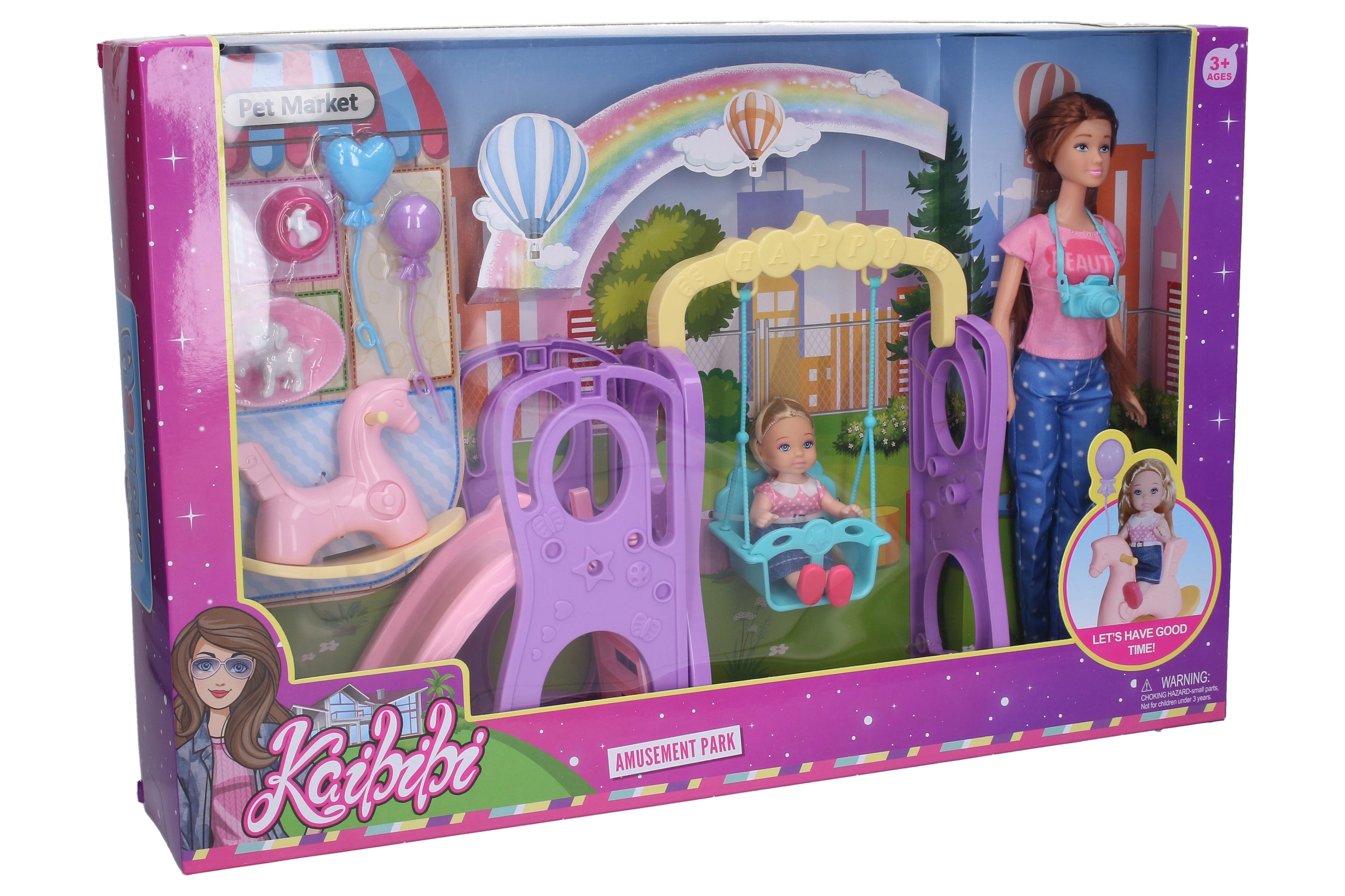 Geniet van creatief speelplezier met een prachtige pop en een complete speelplaatsset. De set bevat een pop van 30 cm en een ruime keuze aan accessoires voor plezier en fantasierijk spel: een schommel, glijbaan, hobbelpaard, een schattige puppy en andere accessoires.