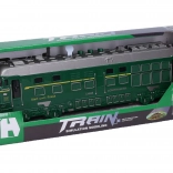 Dit leuke groene zweinertreintje zal kleine spoorwegliefhebbers verrassen. Het biedt licht- en geluidseffecten, een indrukwekkende projectie en eenvoudige bediening met knoppen op het dak. In de verpakking zitten batterijen 3× AG13, zodat kinderen meteen kunnen spelen.