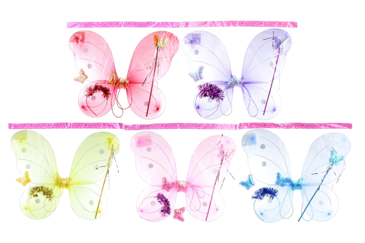 Verander een kleine fee in de koningin van het carnaval. De glinsterende vlindervleugels met diadeem en toverstokje brengen veel plezier en een magische sfeer op elk feest. Dankzij de lichte materialen zitten ze comfortabel en zijn ze makkelijk aan te trekken.