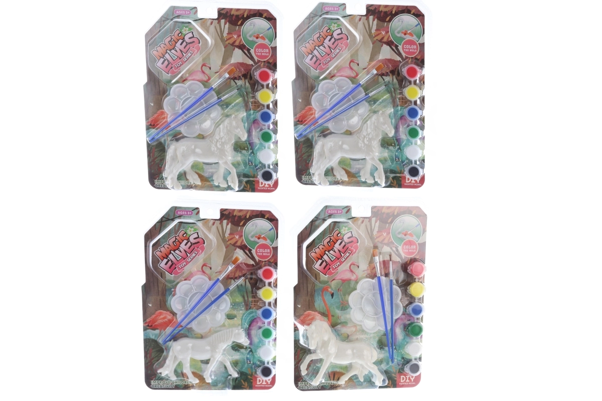 - Kunststof 3D-model van een eenhoorn, 6 kleuren, 2 kwasten, palet