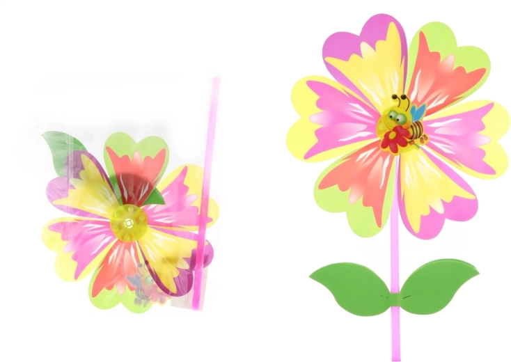 Een kleurrijk windmolentje in de vorm van een bloem maakt elk kind vanaf 3 jaar blij. Dankzij de plastic stok ligt het prettig in de hand, draait het al bij een licht briesje en is het ideaal voor in de tuin, op de speeltuin en tijdens wandelingen. Een geweldige aanvulling voor buitenspeelplezier en de ontwikkeling van motoriek en het waarnemen van de wind.
