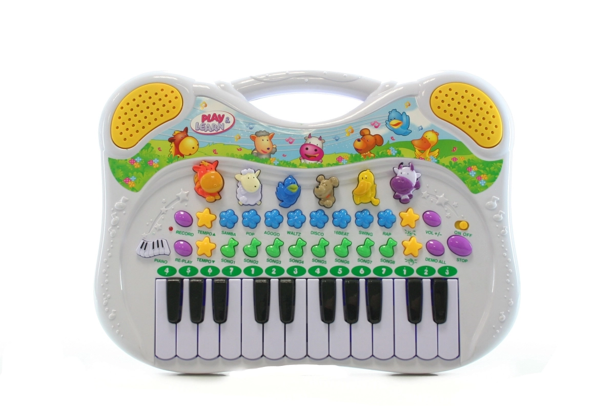 Een leuk kinderpiano op batterijen die de muzikale fantasie en motoriek ontwikkelt. Biedt verschillende ritmes, melodieën en geluiden, de mogelijkheid om eigen nummers op te nemen en af te spelen en is ideaal voor kinderen vanaf 2 jaar.