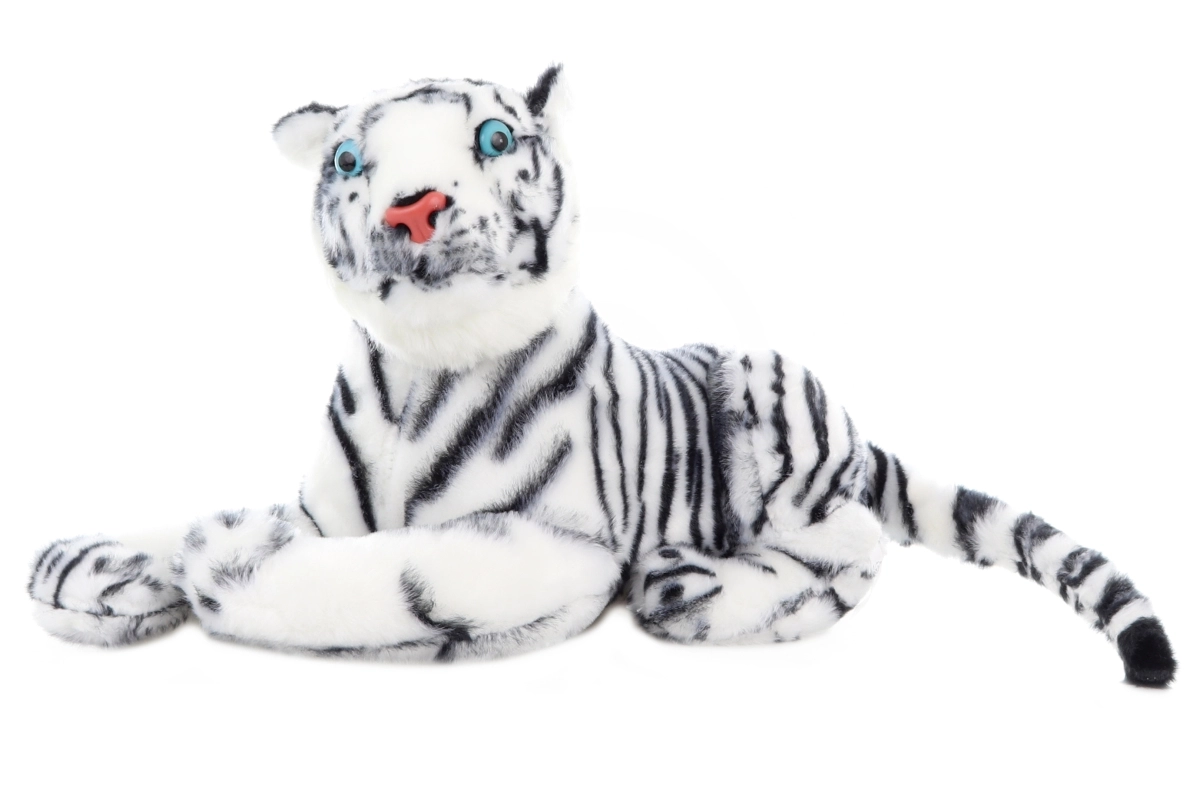 Een schattige en zachte metgezel voor kinderen vanaf de geboorte – pluchen witte tijger van 57 cm. Zacht materiaal, veilig voor de allerkleinsten, ideaal om mee te knuffelen en als decoratie in de kinderkamer.