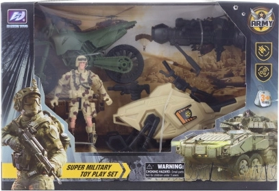 Deze militaire kunststof set met scooter brengt kinderen volop actie en speelplezier. Dankzij het stevige materiaal is hij ideaal voor dagelijks spelen en stimuleert hij zowel de fantasie als de motorische vaardigheden. De praktische doosverpakking maakt er een geweldig cadeau van.
