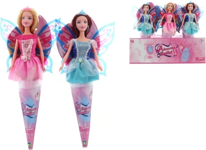 Een betoverende fee-pop in een kegel zal elke kleine prinses blij maken. Ze heeft bewegende gewrichten voor eenvoudig poseren, vlindervleugels voor magisch spel en is versierd met een kroontje en oorbellen. Ideaal cadeau voor kinderen vanaf 3 jaar.