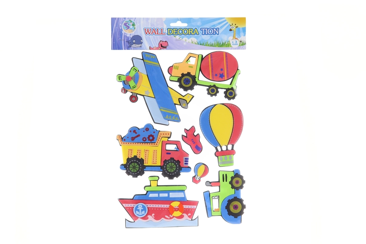 Deze set muurstickers van schuim met motieven van een vliegtuig, vrachtwagen, ballon, schip, tractor en andere voertuigen laat elke kinderkamer stralen. Dankzij de opvallende kleuren en het 3D-effect van het schuim creëren de stickers een speelse ruimte die fantasie en leren over vervoersmiddelen stimuleert.