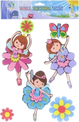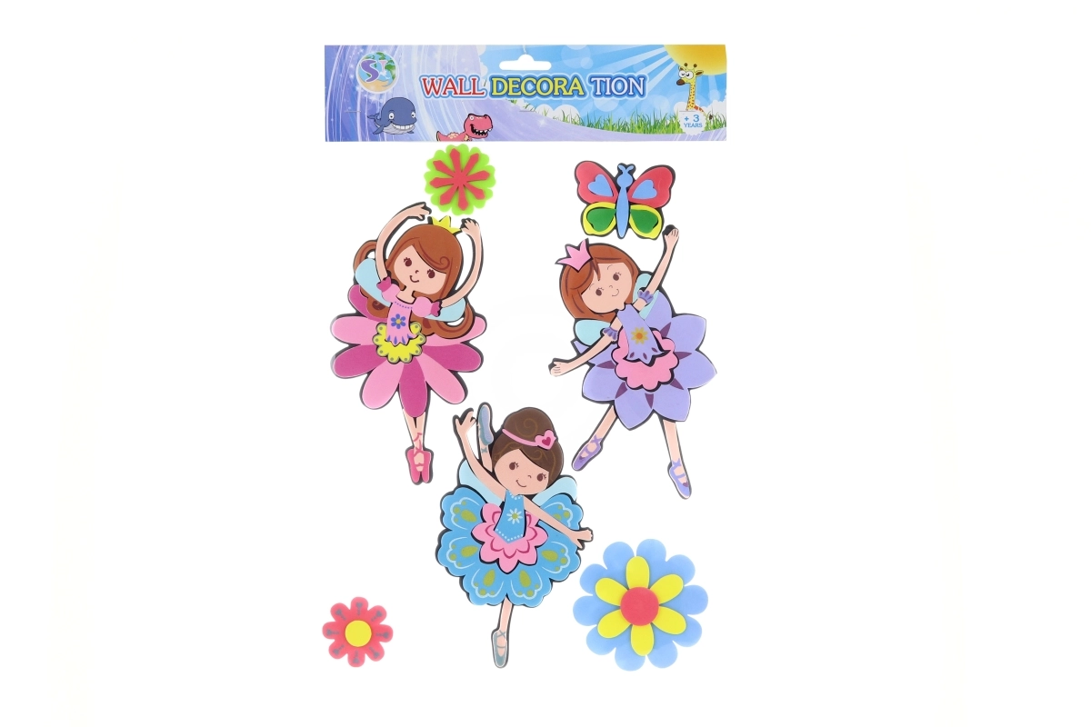 Deze betoverende set wanddecoraties brengt zachtheid en kleur in het interieur. Drie elegante feeën, kleurrijke bloemen en een speelse vlinder vormen een harmonische combinatie die perfect past boven het bedje, het bureau of in de speelhoek. De onderdelen zijn van licht schuim met een aangename textuur en dankzij de zelfklevende achterkant kan zelfs een beginnende decorateur ze eenvoudig aanbrengen.