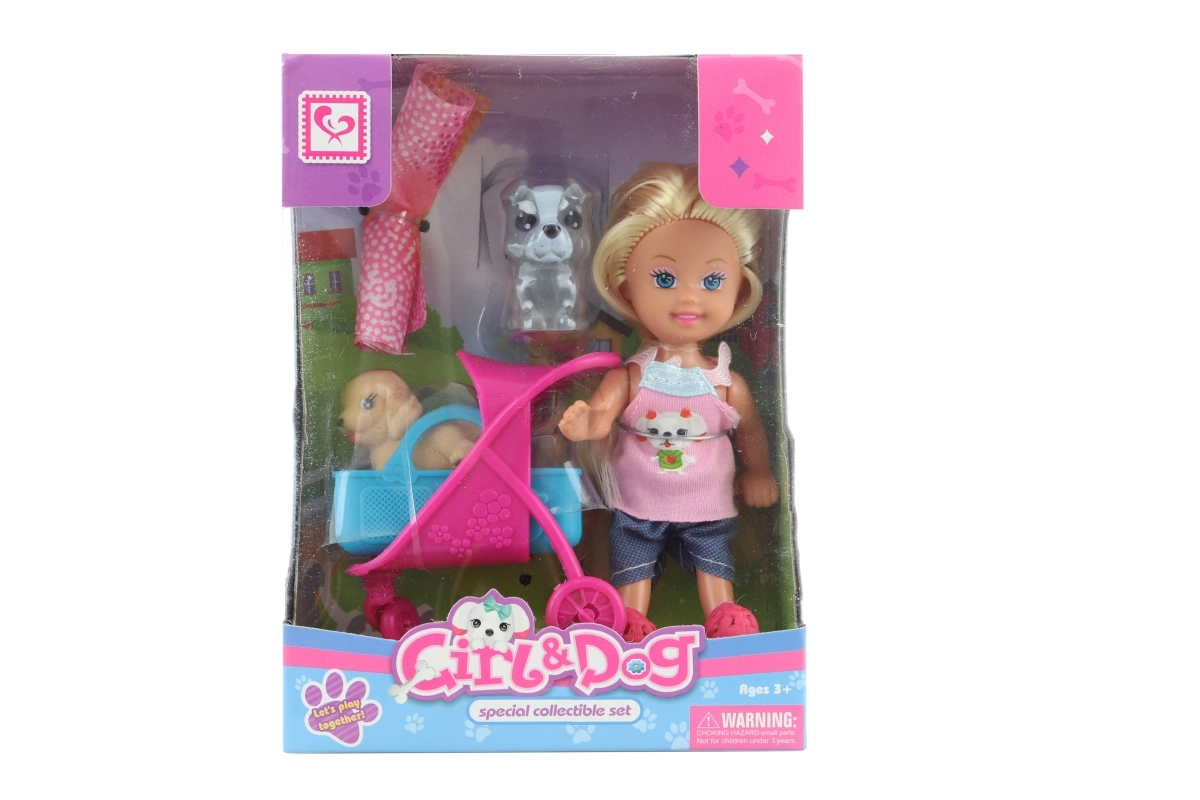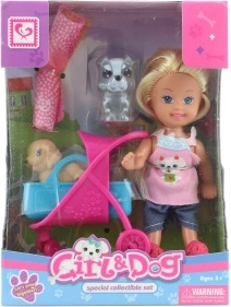 Schattige set voor kleine verzorgers: een pop met hondjes en een kinderwagen zorgt voor uren creatieve speelpret. Lichtgewicht kunststof materiaal, compacte afmetingen en ideaal cadeau voor kinderen vanaf 3 jaar.