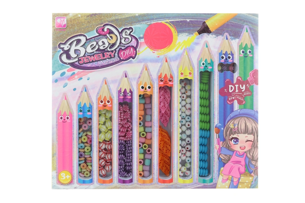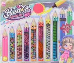Stimuleer de fantasie en het geduld van kinderen met een kleurrijke kralenset in een originele verpakking in de vorm van potloden. Dankzij de diverse vormen en maten maken kinderen eenvoudig kettingen, armbanden of hangers en ontwikkelen ze zowel fijne motoriek als creativiteit.