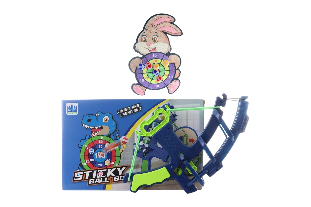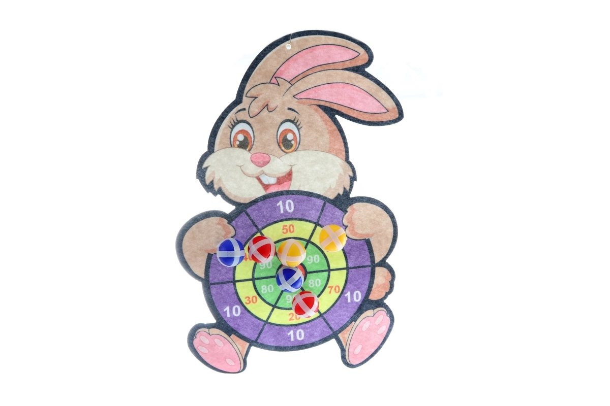 - Kruisboog, doelwit met konijnenmotief, 6 balletjes, haak om op te hangen