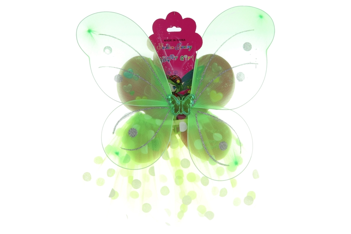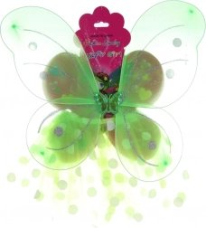 Transparante vlindervleugels met glinsterende stippen zijn eenvoudig om te doen en zitten comfortabel dankzij de elastische bandjes. Ideaal voor lang speelplezier zonder te knellen.